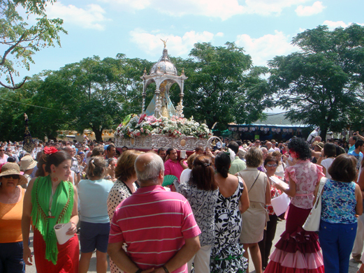 Por romería entendemos una peregrinación a un lugar considerado sagrado. Una vibrante explosión de colorido, santo fervor y derroche de alegría es la Romería en el Santuario de Ntra. Sra. de los Santos (Alcalá de los Gazules–Cádiz)….mas mucha chevechita y rebujito paa la caloo.