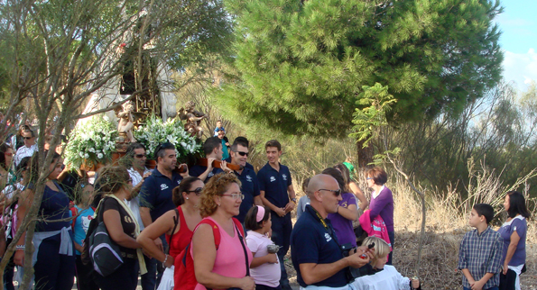 La romería consiste en el traslado de los Santos, en procesión, desde la Iglesia hasta la Ermita, donde se celebra misa y es día de júbilo en las familias isleñas por ser fiesta local.