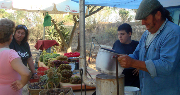A los pies de la Ermita, distintas carpas y chiringuitos amenizan el día con actuaciones y degustaciones gastronómicas. Es típico de esta romería el consumo de productos de la estación otoñal, como castañas, nueces, piñones, almendras…