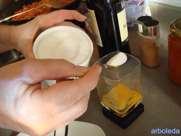 (El azúcar batida da la espumita al elixir)