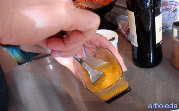 Este preparado que se elaboraba con azúcar, yema de huevo, vino dulce moscatel, se servía en un vaso de cristal con el papel de estraza a modo de tapadera, agitándose posteriormente para el perfecto ligado de todos los ingredientes. Los monjes carmelitas descalzos habían creado realmente un vigorizante con toque espirituoso.