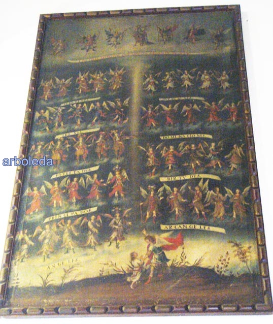 “HERARCHA ANGELORUM” (XVII) Iglesia de San Nicolás, Sanlúcar de Barrameda, Cádiz. Una de las pinturas más curiosas de la parroquia de San Nicolás es la que representa las distintas familias jerárquicas de los ángeles.