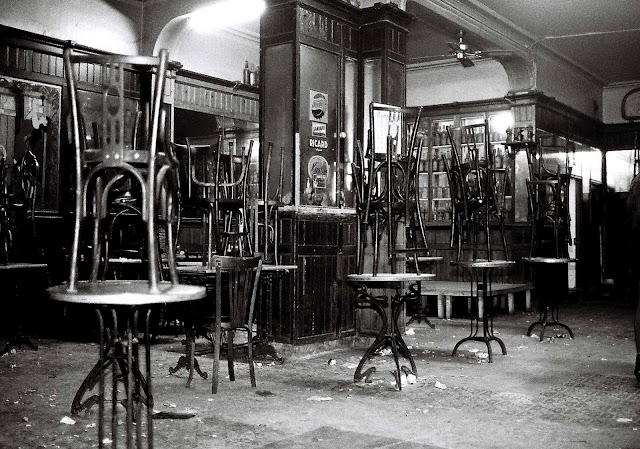Mi bebida favorita es la absenta y mi antro predilecto para volatilizarla, gaznate abajo, es el Bar Marsella. Según Sergio Márquez es simplemente “decadente”. Solo ese adjetivo puede describir al Bar Marsella, que no está en Marsella, Francia, sino en Barcelona, Cataluña. Algo, quizá ese lobo de sargazos tatuado en el hombro desnudo de uno de los camareros, murió allí adentro hace muchísimos años y nadie se ha atrevido a sacarlo a respirar el salitre negro de la noche. El Marsella huele a madera finamente apolillada, a flor submarina, a láudano quemado. Sus baños deben ser los más antiguos en los que haya meado jamás, y los espejos mate de sus muros son portales nigrománticos hacia otros mundos gobernados por el hada verde y su ejército de «hell angels» ataviados con blancos mandiles masónicos y chalecos de cuero de venado. En el Marsella, las niñas observan fijamente, mesmerizadas por la artemisa, como las etiquetas de las botellas cobran vida, y yo mismo pude ver, entre brumas, como una mujer dormida me veía desde sus párpados cerrados a cal y canto por el sueño. A cal y canto debería cerrarse algún día El Marsella, para que nada escape a su dentada trampa de aceite, a su mazmorra de aguardiente sulfurado. Yo fui ciego en el Marsella por unas horas, y pude ver como el nivel del mar subía tras los espejos y los murciélagos acuáticos nadaban hacia cualquier córnea que brillara, buscando libar la sangre verde esmeralda de los lagrimales de las vivisimas estatuas. Entre tanto, las bandejas cromadas iban y venían, repletas de copas de cristal y fuegos fatuos, levitando entre la penumbra.