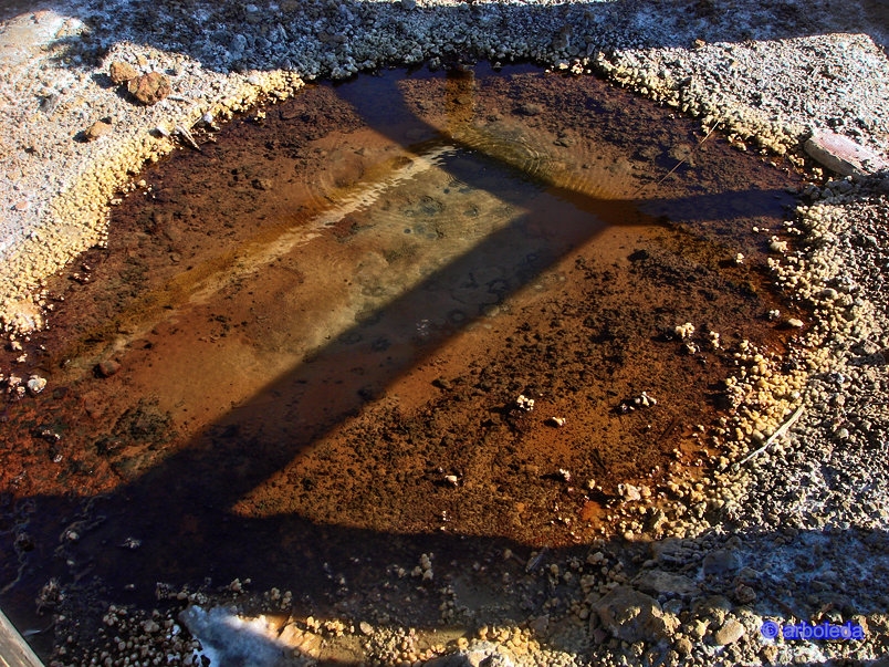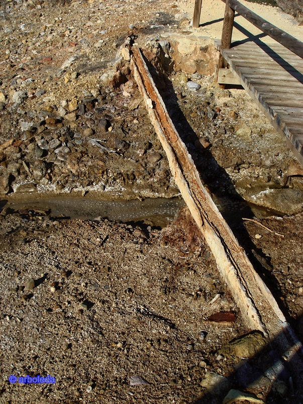 El agua se lleva a unas piscinas que hacen el papel de depósitos. Desde allí se distribuyen por los cristalizadores, donde el sol y el viento hacen su trabajo. Estas salinas deben su existencia a unos manantiales próximos, de los que sale agua de manera constante durante todo el año, a una temperatura media de 25º, con un contenido salino de 28 g/l. Esta agua posee también naturaleza ferruginosa. El carácter salobre de estos manantiales se debe a que el agua atraviesa, antes de aflorar, materiales triásicos de naturaleza margo-arcillosa ricos en yesos y sales solubles. Estos manantiales son perfectamente observables en los alrededores de las salinas y preferentemente rojizos. En su entorno se aprecian micropliegues que nos dan idea de la gran plasticidad de los materiales triásicos, los más antiguos de la provincia.