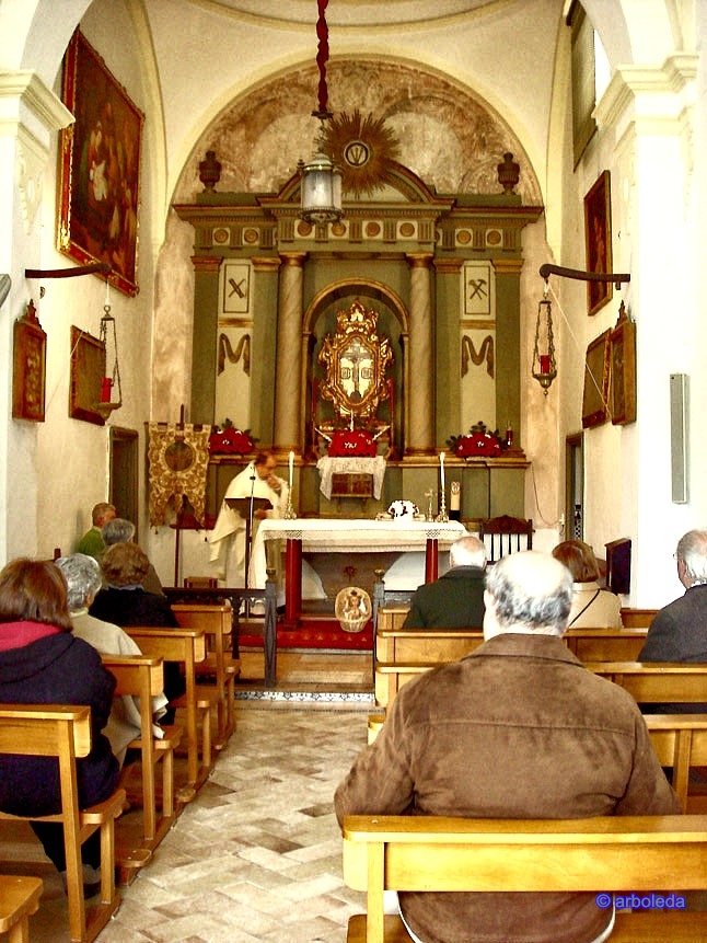 La primitiva ermita estaba al borde del arroyo, junto a la cueva donde fue hallado el Crucifijo, pero advertido el piadoso caballero D. Andrés Cabrera Mármol de que las aguas que bajaban por el arroyo destruían los cimientos de la pequeña ermita, apresuró hacer donación de un pedazo de tierra, en cuyo paraje se construyó, en 1765, el actual santuario, que está próximo al sitio de la aparición y distante kilómetro y medio de Arcos. Un año después, es decir, en 1766, Sor María Belén de San Andrés Cabrera Mármol, religiosa del convento de la Encarnación de esta ciudad, costeó, en unión de sus hermanos, la urna o relicario que guarda la venerada imagen, según consta por una inscripción que rodea el interior de la puerta del relicario.