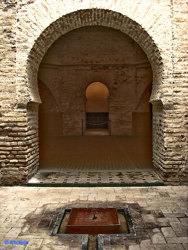 La fuente de la mezquita del alcázar de Jerez de la Frontera, obra restauración de Fernando G. Durán (el último alfarero de Jerez), no te vuelve más guapo, ni más rico, ni poderoso, ni te consigue amores, nada de nada. Tan solo te prepara para captar la ternura que reina dentro de la mezquita. Déjala correr por tus dedos, siéntela en tu rostro y vive lo inexplicable. La magia sale a tu encuentro.