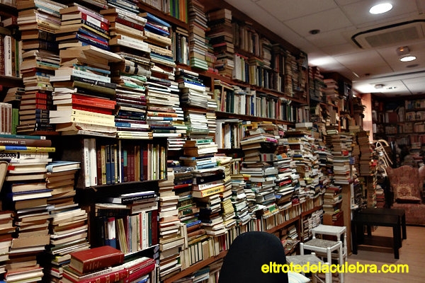 El librero ya se ha acostumbrado a encontrar, todos los días, libros por los suelos o en equilibrios forzosos. El fantasma del pintor José Montenegro y Capell, forma parte del encanto de este lugar. Vaga por libre y de vez en cuando tira libros y pilas de ellos. El pobre.