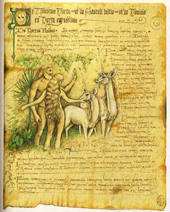 “¡Atención! Vendrá una edad en que la ciencia oscurecerá por doquier las esperanzas de los hombres. Carros de hierro rodarán por la tierra, que se endurecerá y vaciará para soportar su peso. El aire se llenará con el clamor de muchas voces. Plagas y enfermedades desconocidas serán multitud. La esfera de la Luna retendrá las huellas del calzado del Hombre. Dos reinos poderosos se disputarán el mundo, y se volverán contra él, hasta que el suelo y el mar enfermen, y el viento se convierta en un flujo de vapores envenenados. Y todo hombre será puesto a prueba dolorosamente, de tal modo que al fin ninguno escapará de la opción entre la Luz y la Oscuridad. Entonces, en el Tiempo de la Gran Purificación, volverá el Unicornio con gran fuerza. Se mantendrá en los límites de nuestra realidad, sembrará en nuestra mente sueños de una edad más brillante en el futuro; serán muchos los ansiosos por verle en su forma verdadera. Pero el Unicornio es una criatura espiritual y se conforma según las imágenes que convoca en el corazón de quienes le llaman. Y habrá tanta idea deforme o conflictiva sobre su naturaleza que con suma dificultad hallará el camino para satisfacer a todos. Entonces se deberán revelar estas páginas y comunicarse sin restricciones. Para que toda confusión se resuelva y haya unidad de visión que convoque al Unicornio en su estado original, verdadero y perfecto”.