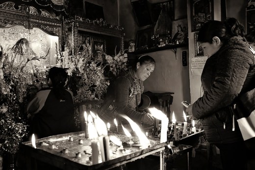 A la estampita que han acarreado consigo de Cusco, los jerezanos le ponen velas. Las rojas son para el amor, la blanca salud, amarillas para el dinero, verdes representan el trabajo, azules los estudios, rosadas para el triunfo, morado son los milagros, anaranjado felicidad y negro para cuestiones de juzgados. Con la libertad de culto (libertad de conciencia), más los viajes “Low Cost”, el turismo en busca de lo religioso (Santeria cubana, vudu en el Caribe, brujería africana, etc.), está en auge en Jerez de la Frontera.