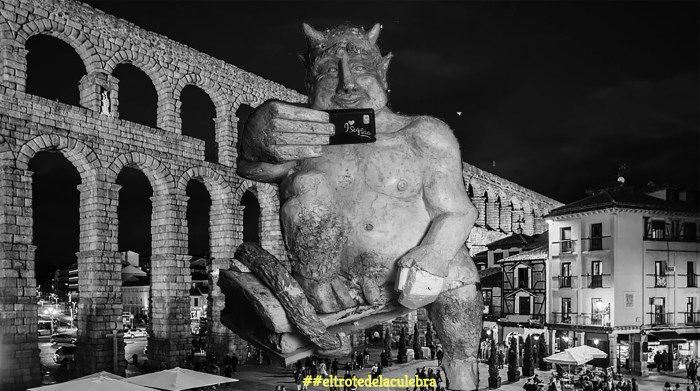 La escultura segoviana, representa a un diablillo sonriente de 1,70 metros de altura, que con una mano sujeta un móvil y se hace un selfie. Posiblemente las personas que han interpuesto la denuncia, no van muy descaminadas, detrás hay un tufillo en el ambiente demoníaco.