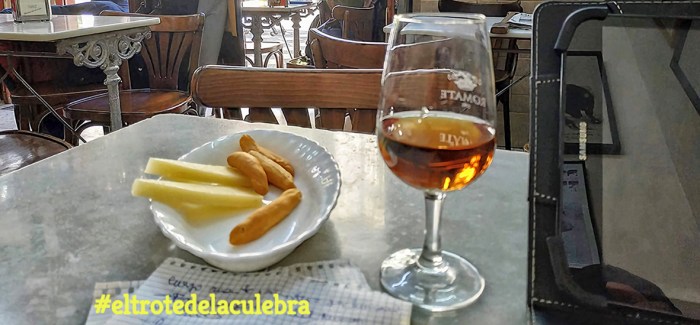 En el rincón del pecado etílico (La Moderna), a dónde acudo a saciar la sed de ideas, bebo un amontillado NPU de la bodega Sánchez Romate, mientras rumio las palabras de una bruja jerezana sabía que dice: “prefiero ser una borracha anónima a borracho visto”, para señalarme mi costumbre de empinar el codo en los bares. ¡Qué sería el mundo y los hombres sin las mujeres! Las sabias naturalmente.