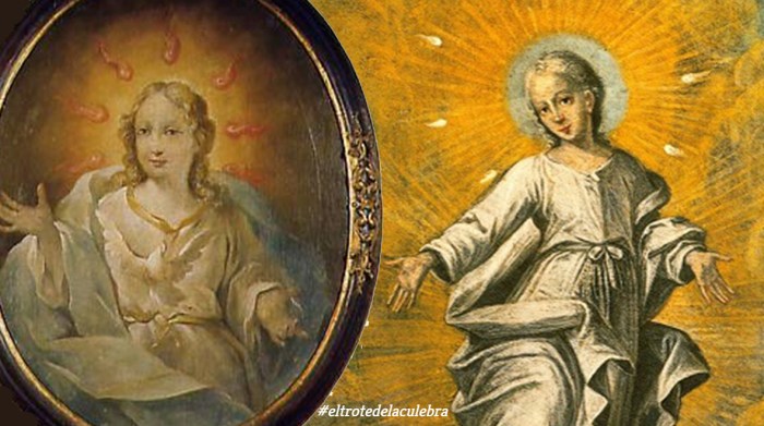 La imagen del Espíritu Santo como Mujer que se le apareció a Santa Crescencia de Keufbeuron, cuya devoción ella propagó, fue criticada por el Papa Benedicto XIV. Crescencia quiso adorar al Espíritu Santo como mujer-joven, como signo femenino, frente al dominio de los varones.