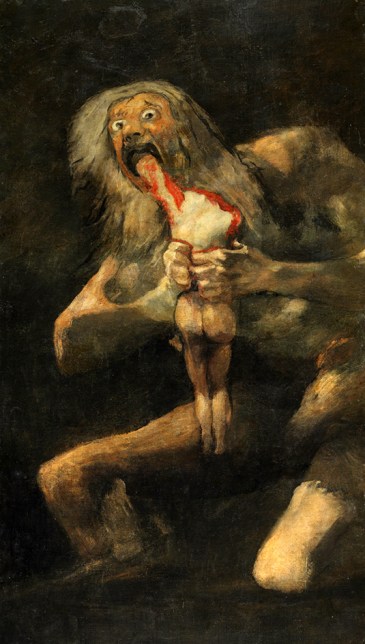 Saturno devorando la Constitución de Cádiz; Judith es una heroína liberal a punto de degollar al Holofernes absolutista; los dos gañanes no son alegorías amargas de las dos Españas equiparadas en atávica brutalidad, sino la España buena defendiéndose de la mala.
