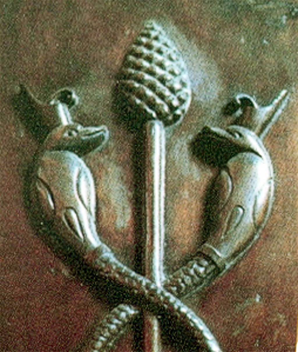 En el arte antiguo, el Tercer Ojo es representado con ese símbolo. Esta piña también personifica la vida eterna y la iluminación o sabiduría. Muchas civilizaciones antiguas usaron este ícono. Uno de los más importantes es el arte de los Anunnaki de Sumeria, que lo muestran a ellos sosteniendo un cono de pino.