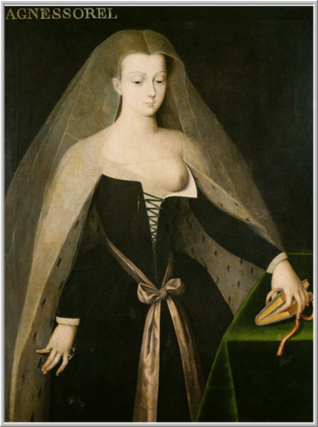 En cuanto al escote, aunque la mujer empieza a mostrarlo, sus pechos no podían exponerse en exceso ni con su forma natural, por lo que algunos vestidos tenían refuerzos en el interior para aplastar los senos. Agnes Sorel fue retratada en varias ocasiones con atuendos de grandes escotes o incluso con un seno al aire. Varios expertos señalan que fue de las primeras mujeres en atreverse a lucir este tipo de escotes. En España continuaron tapadas por sécula seculorum.