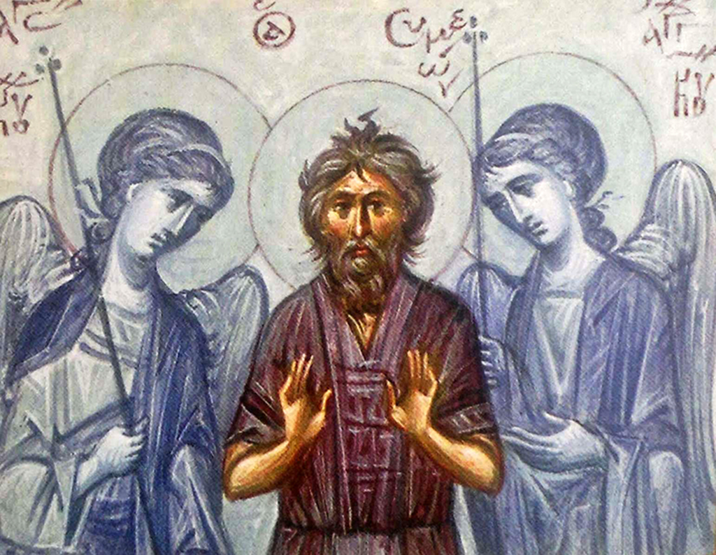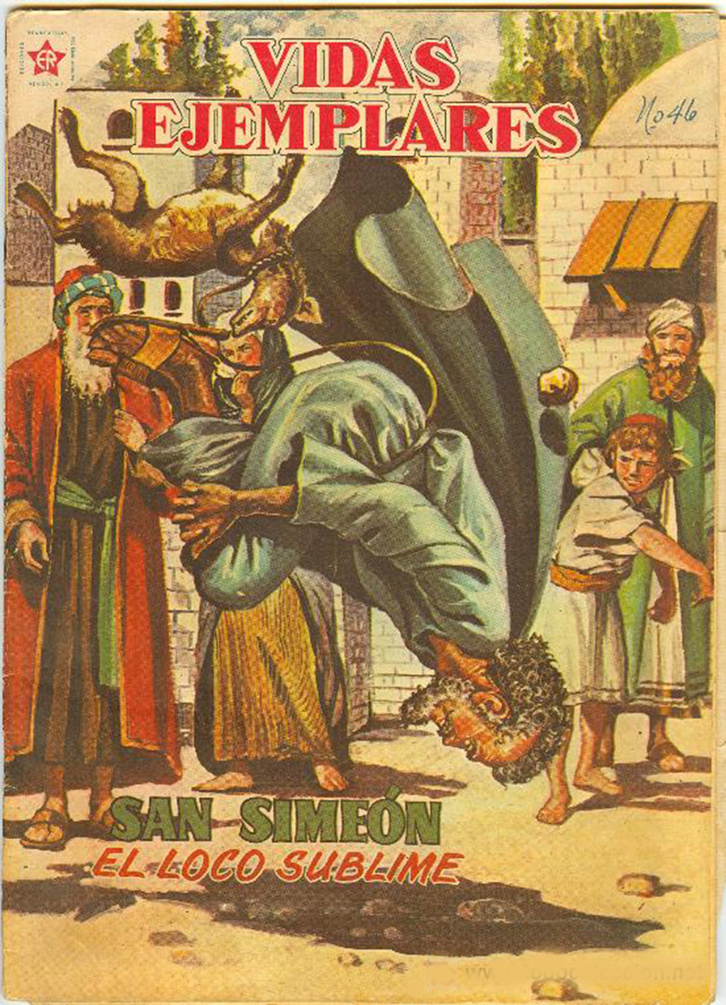 San Simeón de Emesa es el loco más loco de todo el santoral, situándolo bajo el reinado de Justiniano (527-565 AD) y se describe como un “santo loco”, uno de esos pocos “monjes herbívoros” que consiguieron regresar al mundo desde el desierto en el que decidió vivir.