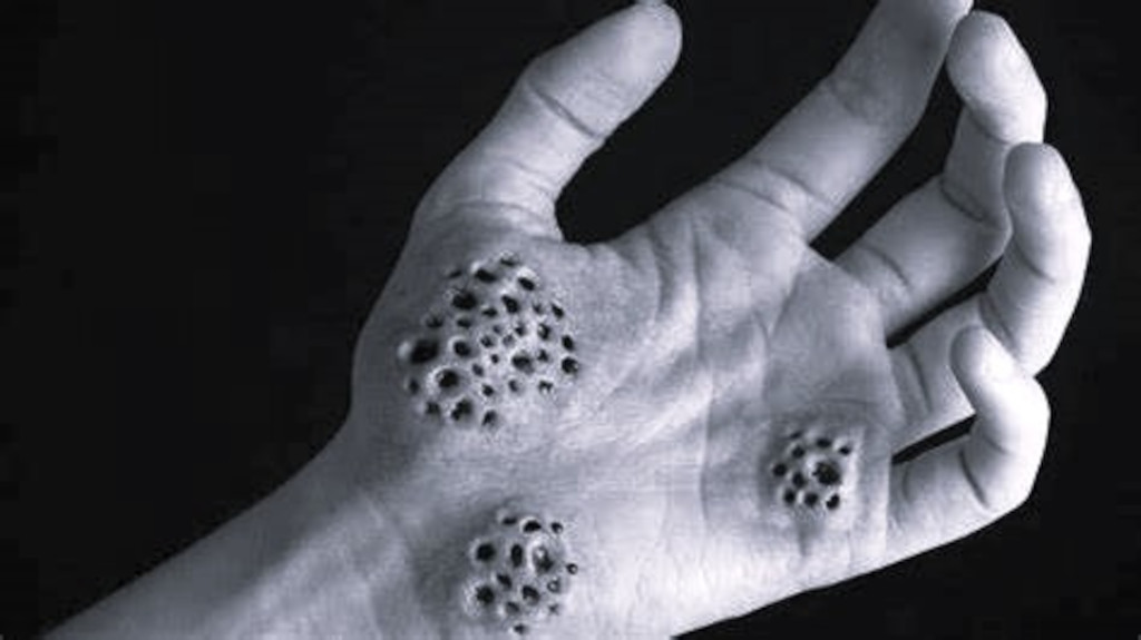 Alicia es consciente de lo irracional de su miedo, pero aun así no puede evitar encogerse cada vez que ve un patrón de agujeros, por pequeños que sean. Algo que le resulta especialmente difícil cuando está con sus amigos o en público. Siempre, a donde mira, ve un modelo de orificios: en la textura de una formación rocosa, en la corteza de un árbol, en el dibujo de un pastel. Mire donde mire, hay algo que desencadena su miedo.