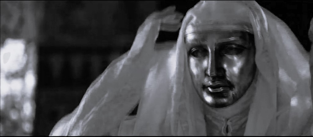 La figura comenzó a acercarse a la imagen del Cristo que llevaba la hermandad en su paso. La multitud observaba con asombro mientras la figura se arrodillaba ante la imagen y comenzaba a murmurar palabras incomprensibles. De repente, la imagen del Cristo comenzó a temblar violentamente. Los nazarenos trataban de sostener el paso, pero era imposible.