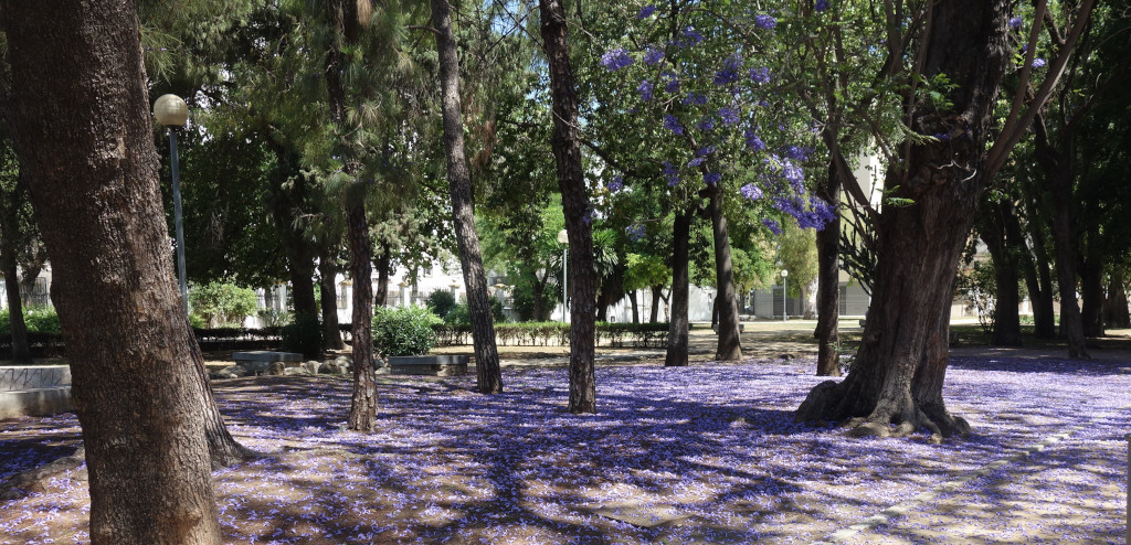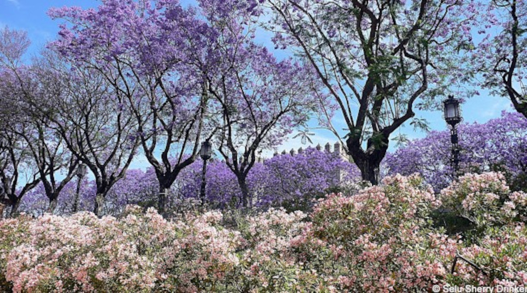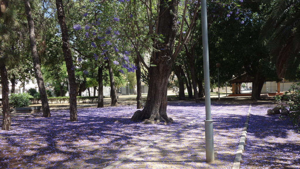 No tiene explicación razonable, las jacarandas de Jerez están cargadas de simbolismo y misterio. Se dice que, si una joven soltera se sienta bajo una jacaranda en flor, conocerá a su futuro marido antes de que caiga el último pétalo. Otros aseguran que el número de flores que da un árbol predice la cosecha de uva de ese año.
