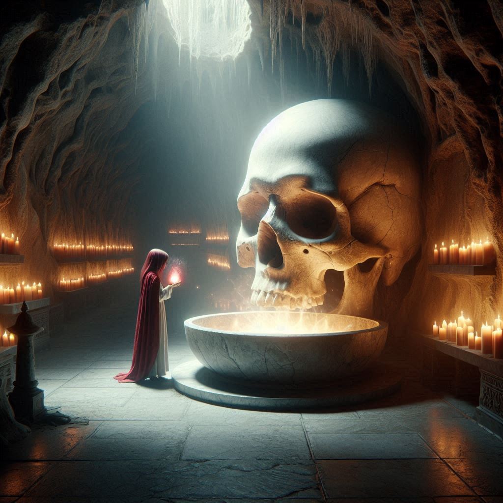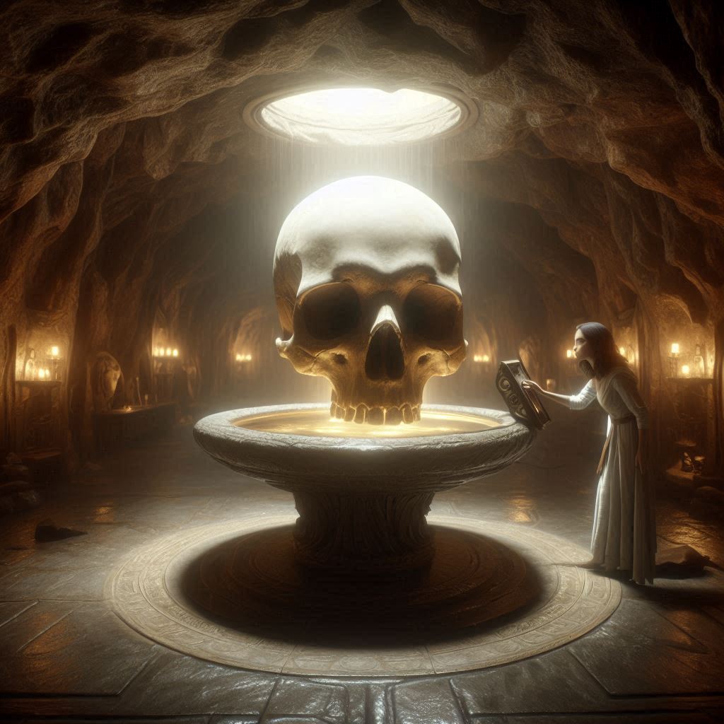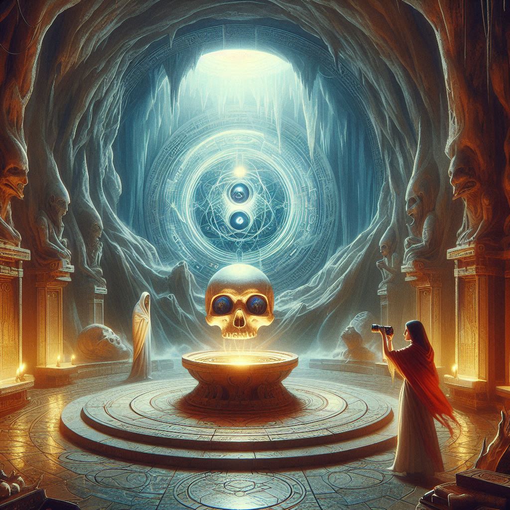 Tras horas de explorar pasadizos y sortear trampas, Marta y Anselmo llegan a la cámara oculta. Sobre un pedestal de mármol, la Calavera del Destino brilla con una luz pura y sobrenatural. Marta se acerca, sintiendo una mezcla de emoción y temor. Al tocarla, una oleada de calidez y paz la invade.