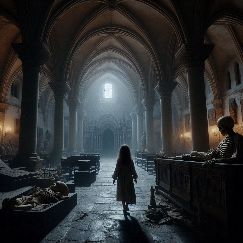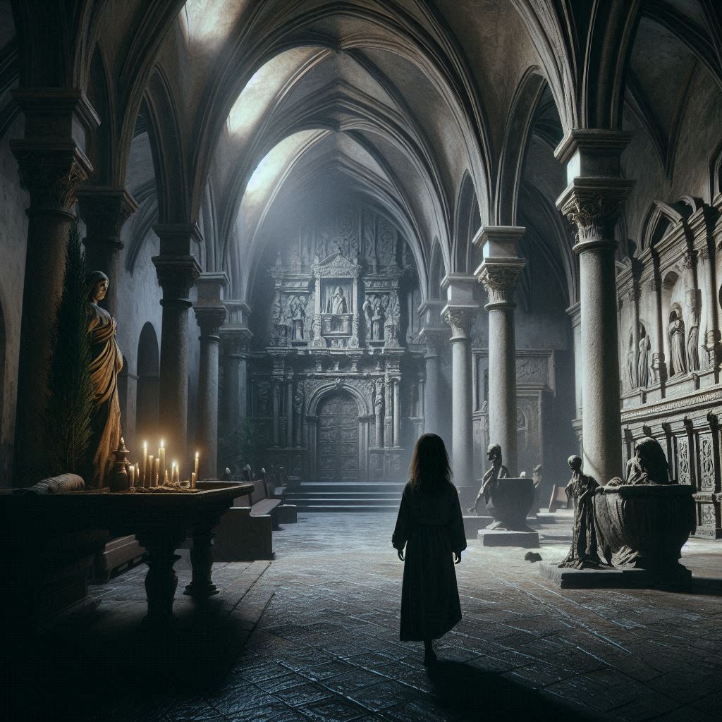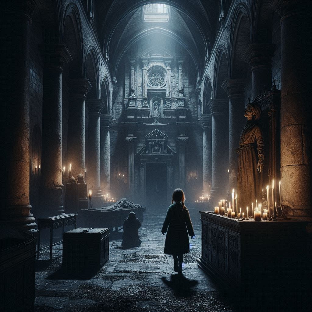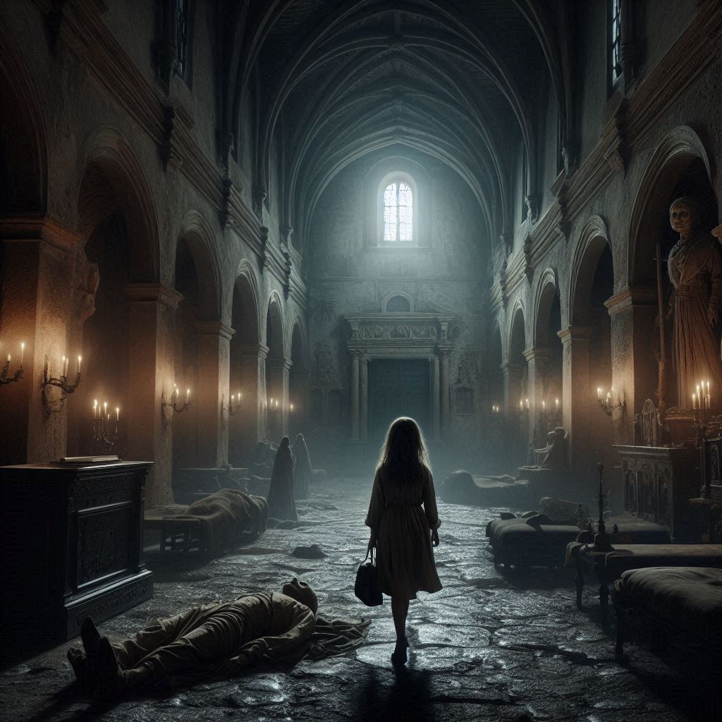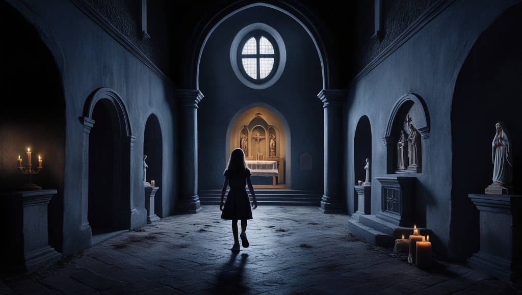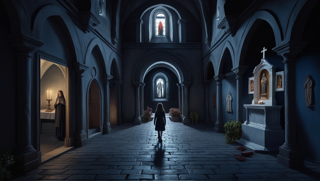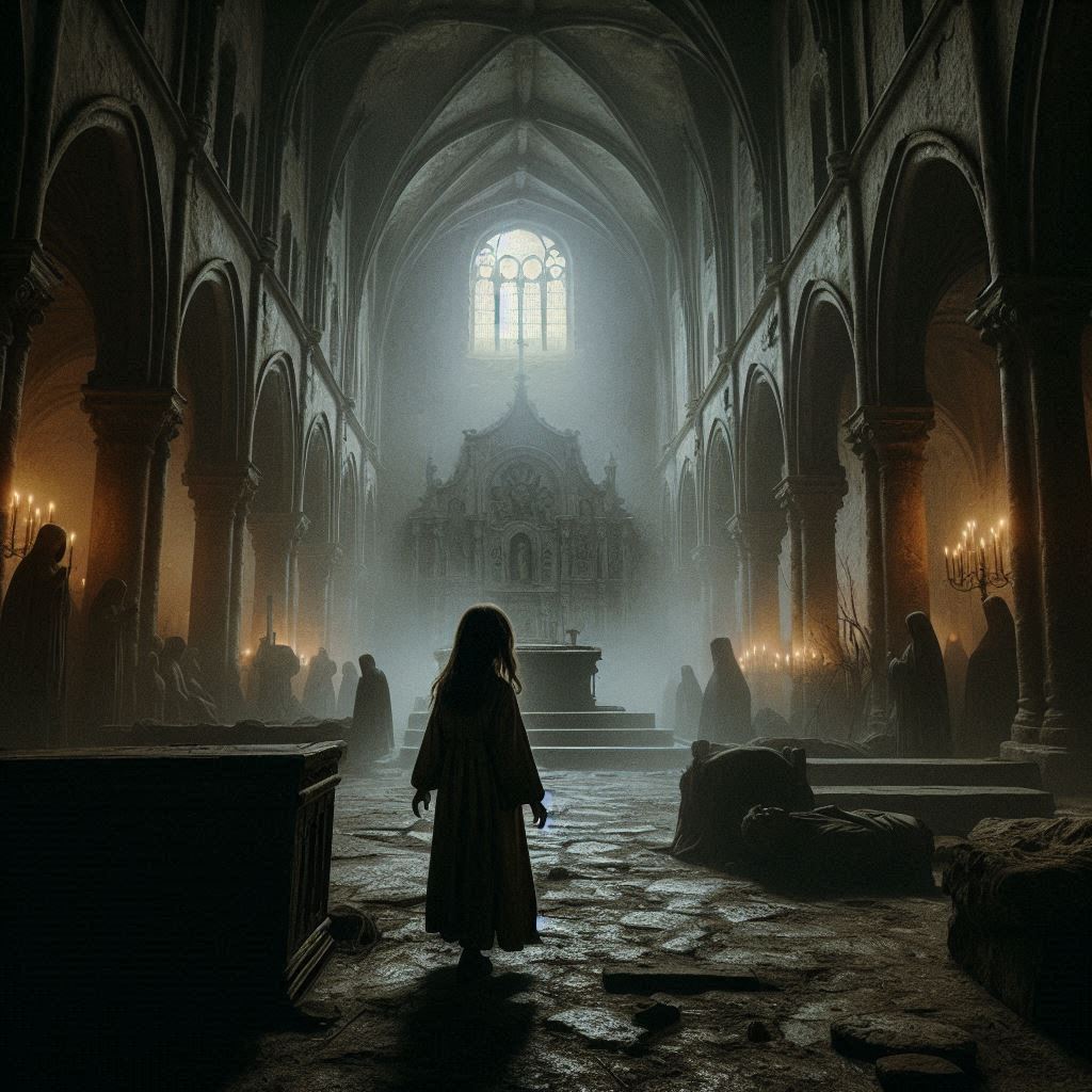 La Hermana Carmen intentó huir, pero el suelo bajo sus pies se abrió como una boca hambrienta, tragándosela en un torbellino de sombras. Inés gritó, sintiendo que el mismo destino la aguardaba, pero entonces, el viento cesó y todo quedó en silencio. La figura de la niña en el altar se desplomó de nuevo, inerte.