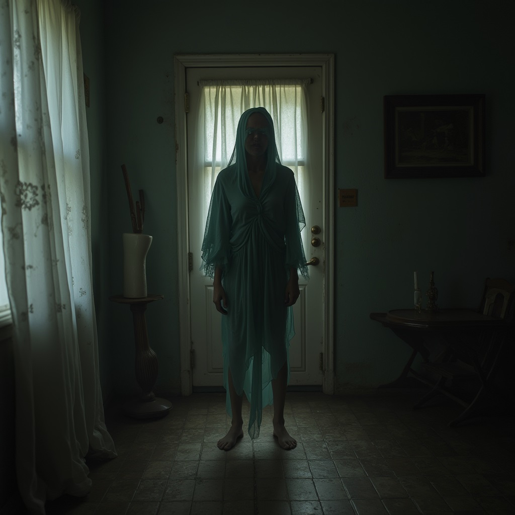 Una figura alta y oscura se materializó en la esquina de la sala, justo donde la luz de la luna no podía llegar. No tenía rostro, solo una sombra amorfa que parecía absorber la luz a su alrededor. Francisco retrocedió, su cuerpo paralizado por el terror, pero la figura avanzó lentamente hacia él.