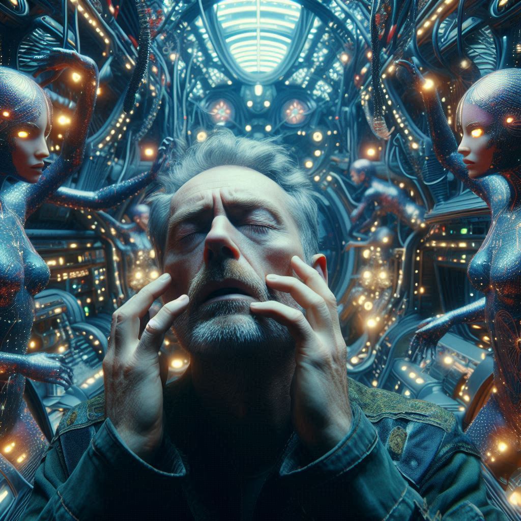 El terror se transformó en instinto de supervivencia. Intentó escapar, pero las paredes de la nave parecían retenerlo. A medida que la sala se iluminaba, las alienígenas lo preparaban para un ritual indescriptible. Su piel ardía y su mente se fracturaba bajo la presión de sensaciones ajenas.