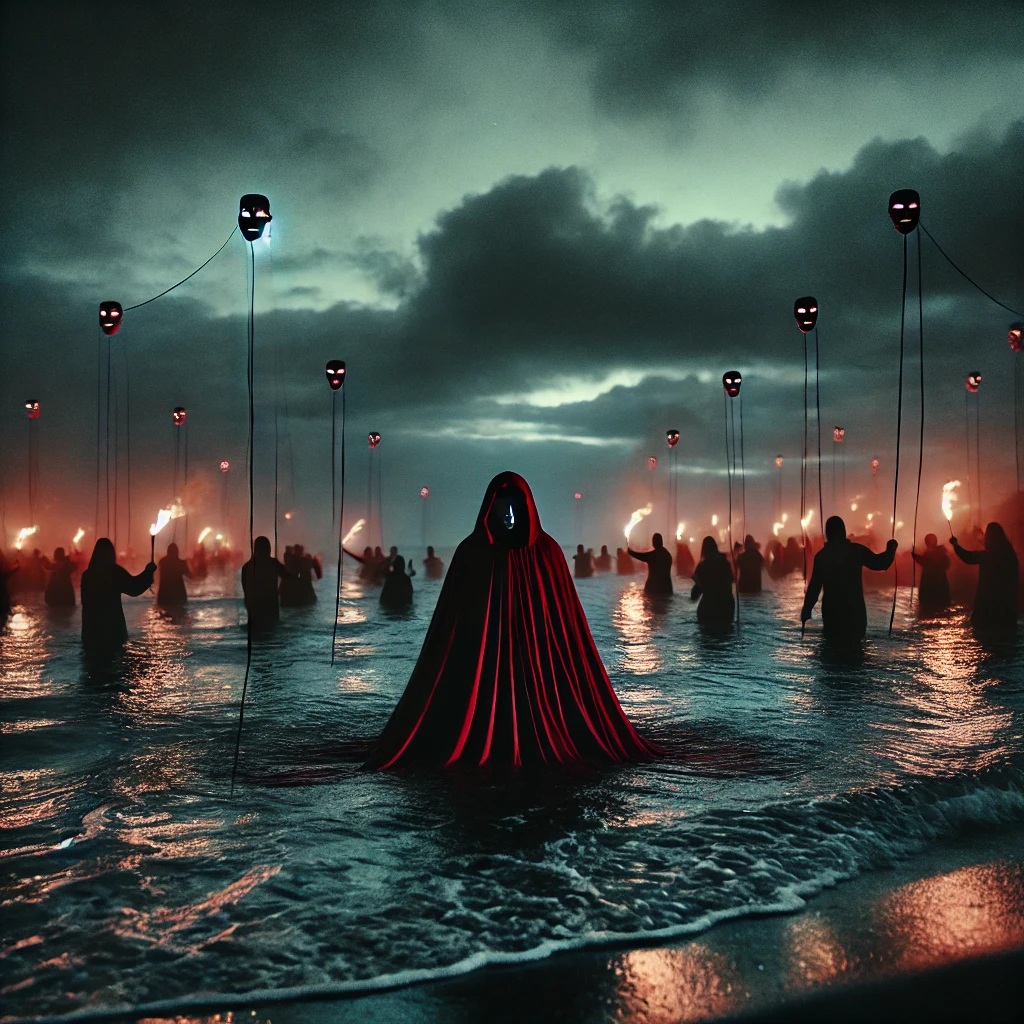 En la playa de La Caleta, Laura luchaba contra algo invisible. La máscara parecía fusionarse con su rostro. La multitud celebraba alrededor de una sardina ardiente, pero dentro del fuego se distinguía un cuerpo humano.