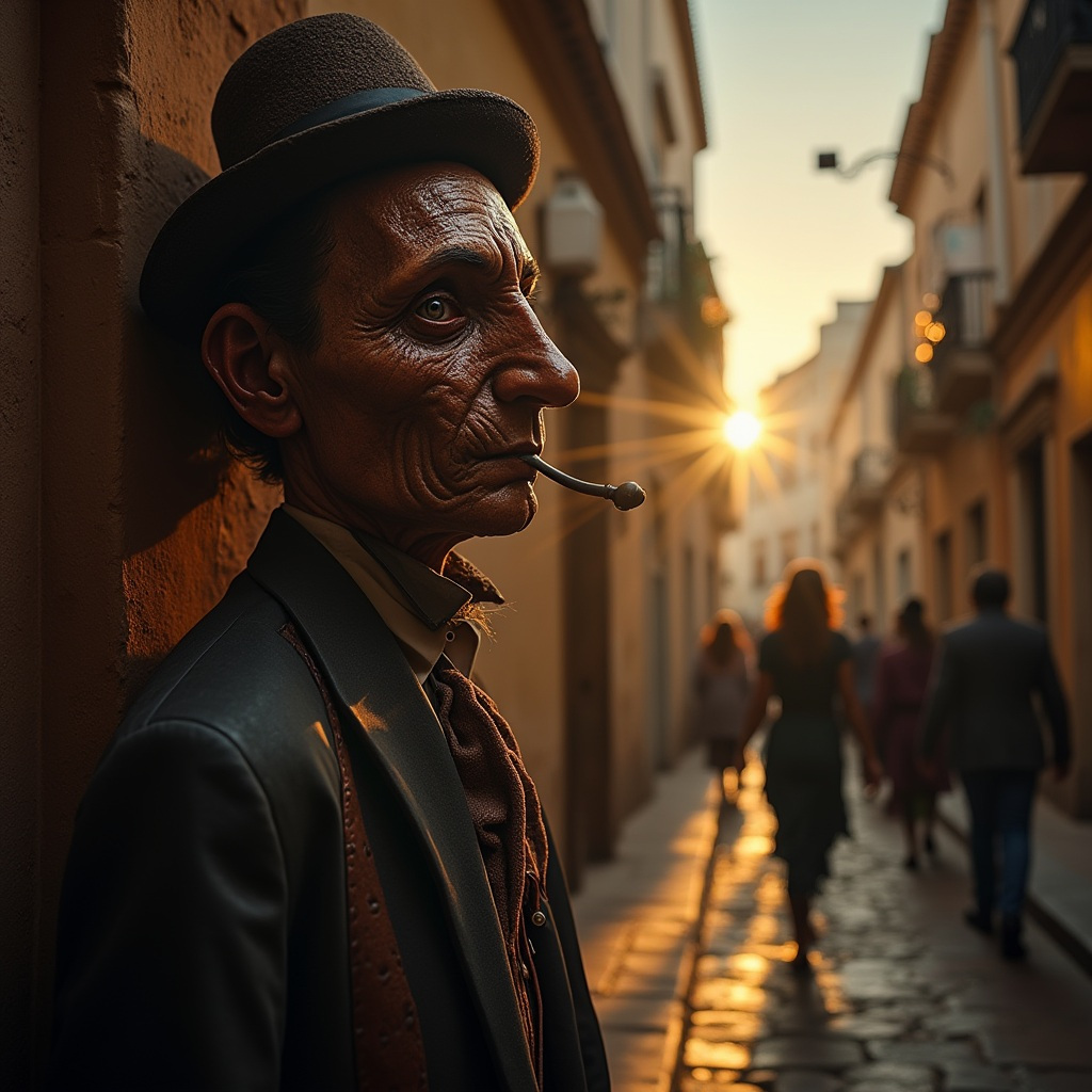 Valcárcel se adentró en el callejón. Las paredes parecían cerrarse sobre él. Una melodía distorsionada flotaba en el aire. Al final, encontró una puerta entreabierta con luz rojiza.