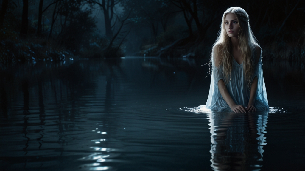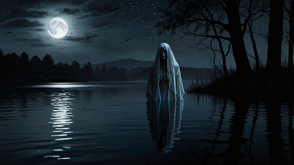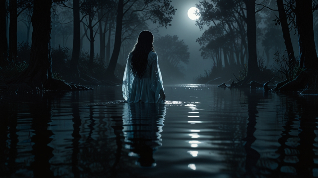 De repente, escucha un llanto lastimoso. Es un sonido que atraviesa el alma. Laura siente que su corazón late con fuerza, pero no puede moverse. “¿Has visto a mi hijo?” La voz es suave, casi un susurro, pero llena de dolor. Laura gira y ve a una figura vestida de blanco, con el cabello largo y negro, flotando sobre el agua.