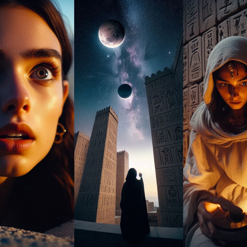 Lucía, incapaz de hablar, asintió con un nudo en la garganta. Sabía su nombre antes de que la desconocida lo pronunciara: Nefertari, guardiana del Zodíaco. La mujer alzó una mano y, como un manto oscuro, el conocimiento cayó sobre Lucía.