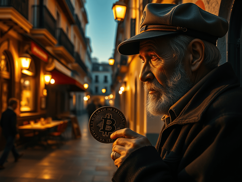 Alfonso Ríos, un programador retirado y aficionado a las criptomonedas, caminaba por la plaza de San Juan de Dios con las manos en los bolsillos y la mente atrapada en un laberinto de pensamientos. Su vida había sido una montaña rusa de éxitos y fracasos financieros, marcada por la volatilidad de Bitcoin. Después de perder casi todo en una mala inversión, había regresado a Cádiz para reconstruir su vida.