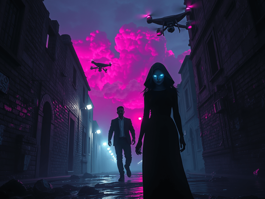 La ciudad yacía en un silencio sepulcral, pero la presencia de aquella entidad persistía, oculta en las redes y las sombras. Helena, con voz apenas audible, mascuculló: «Debes marcharte». Sin embargo, Camilo se negó rotundamente a abandonarla.