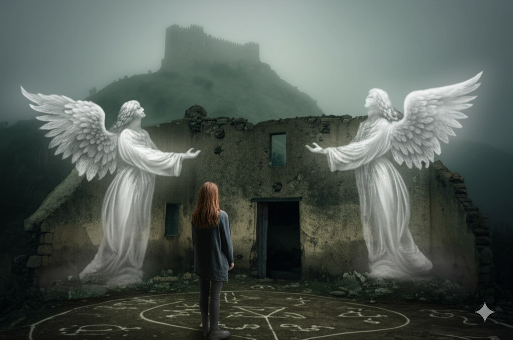 Al despertar, descubrió marcas en la pared: un rostro tallado que coincidía exactamente con el de su visión onírica. Lola realizó una exhaustiva investigación en la biblioteca local, donde descubrió referencias a una orden desaparecida: los «Vigilantes de la Luz Oblicua», un grupo de monjes que, según los registros, habían encerrado ángeles caídos en lugares clave.