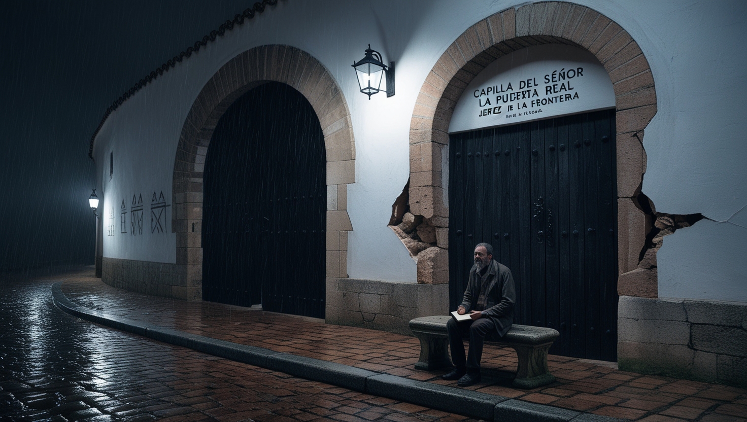 Así fue. Así ocurrió. Así me lo contaron: En el corazón de Jerez de la Frontera, donde el viento lleva consigo el aroma a vino fermentado y la cera derretida, se esconde un secreto; un lugar que, al caer el sol tras nubes pesadas, parece transformarse. Las estrechas callejuelas, empapadas por la llovizna, semejan arterias de un cuerpo que duerme, y en su centro, como una vértebra maldita, se alza la Capilla del Señor de la Puerta Real, un sitio que parece guardar secretos y misterios.