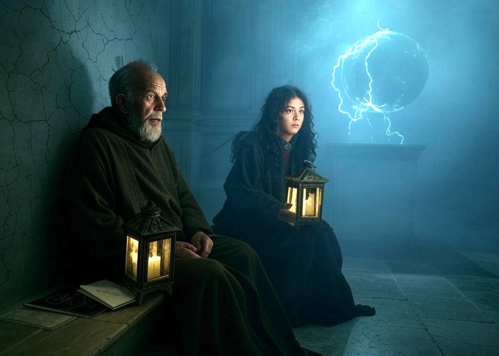 Una madrugada, Inés le preguntó: —¿Has oído hablar de los Custodios del Quinto Umbral? A lo que Elías respondió: —Solo conozco vaguedades. En el siglo XVII, estos individuos no eran ni monjes ni alquimistas, sino algo intermedio, una especie de puente entre dos mundos. La capilla se convirtió en un umbral entre la realidad y lo desconocido, y su obsesión por descubrir sus secretos creció con cada paso.