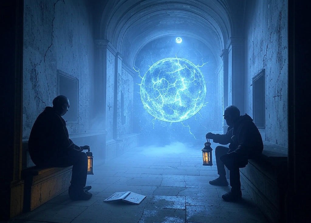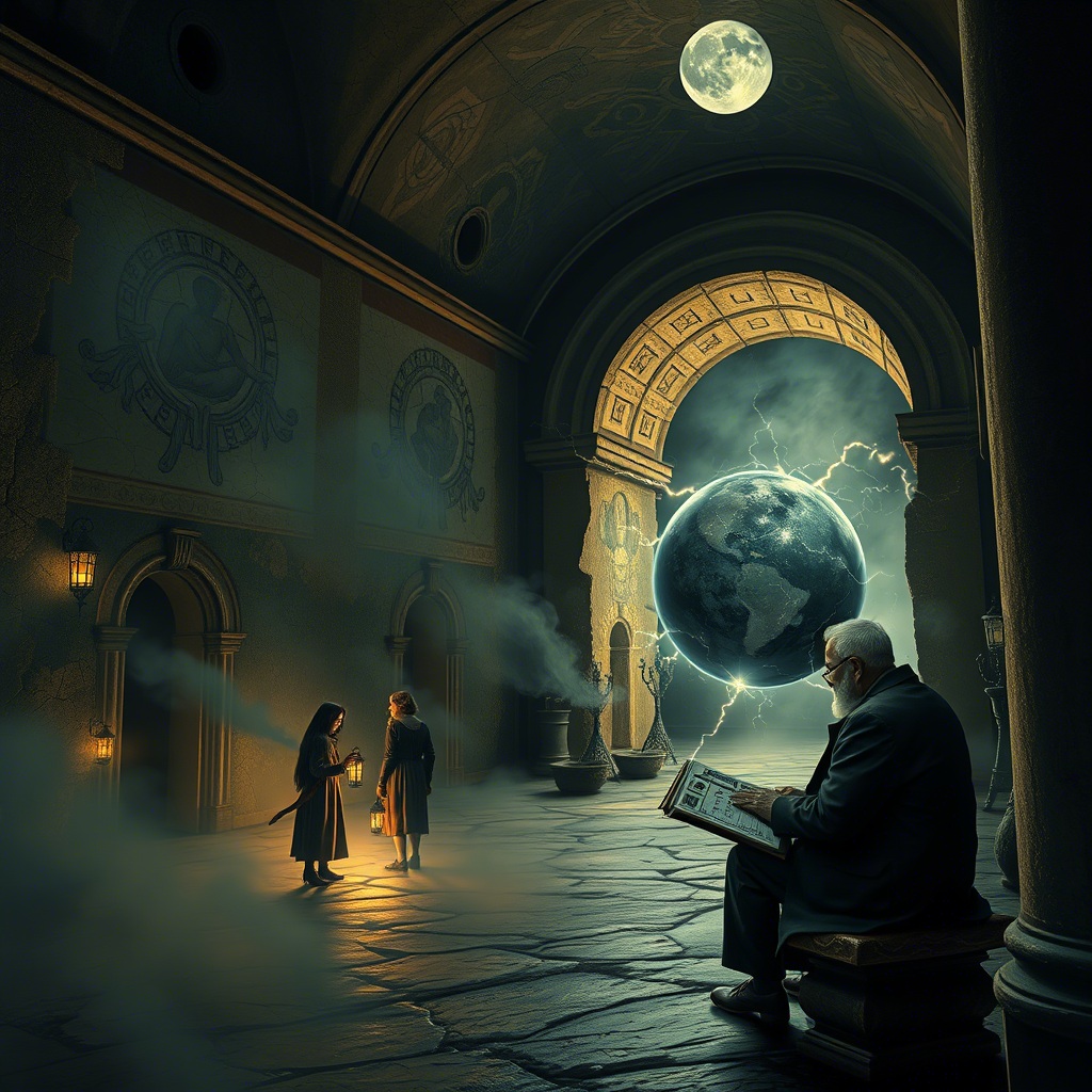 El descenso fue largo y el aire se volvía cada vez más espeso, hasta que llegaron a una galería subterránea iluminada sin fuente aparente, con inscripciones en latín, hebreo y una lengua desconocida que parecía provenir de otro mundo. Al fondo de la galería, una sala circular los recibió con una esfera de obsidiana en un pedestal, que parecía vibrar con una frecuencia extraña.