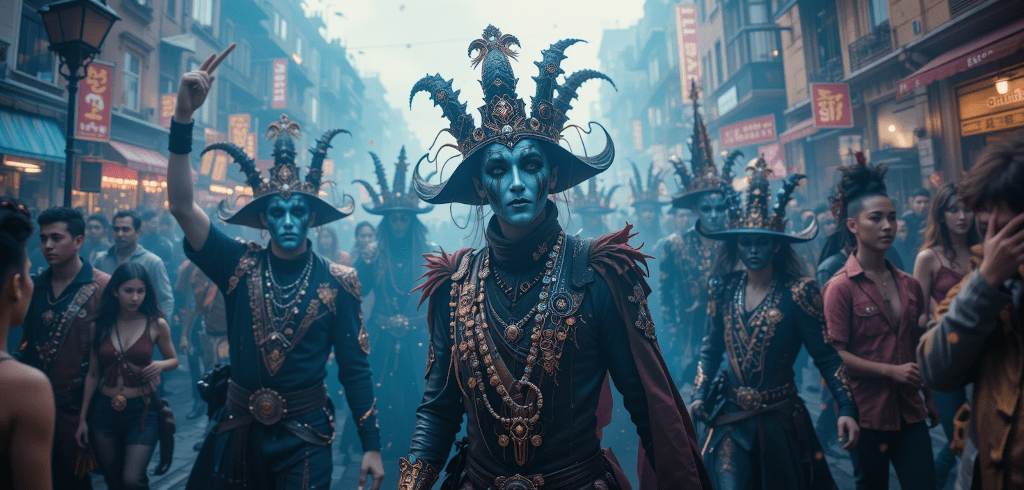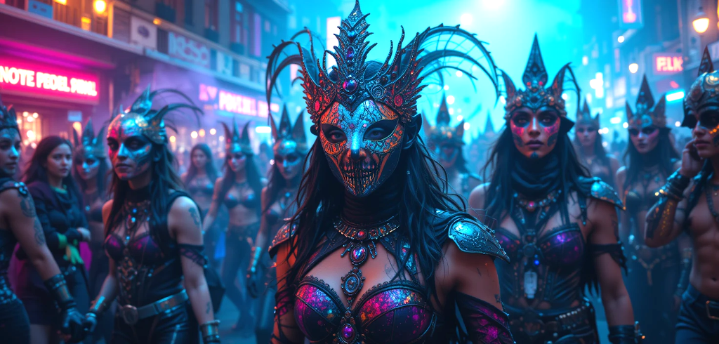 Pero el Carnaval, ese delirio colectivo de máscaras y memoria, seguía su curso… aunque esta vez con un trasfondo inquietante, como si la ciudad sonriera con los labios mientras apretaba los dientes. Una nueva moda se extendía como pólvora: las “Máscaras Singular”, visores de realidad aumentada que prometían “elevar la experiencia carnavalesca”. Y como buen producto del siglo XXI, venían con manual de usuario, algoritmos… y consecuencias imprevistas.