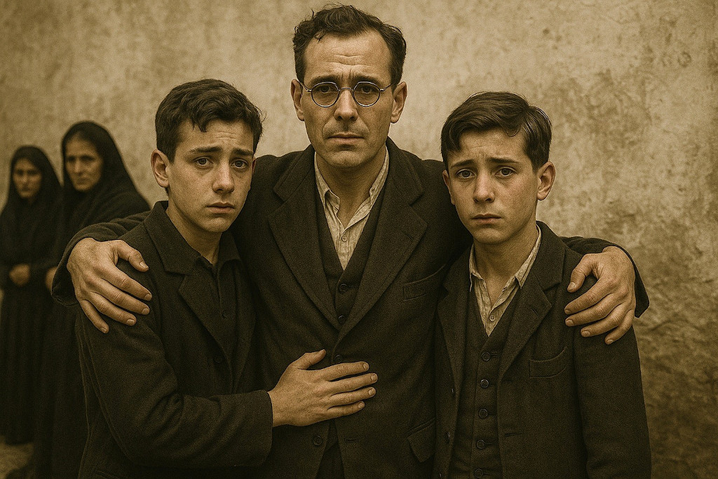 La historia gira en torno a las “sacas”, que era el término que se usaba para referirse a las extracciones nocturnas de prisioneros para fusilarlos. Uno de los episodios más impactantes fue el asesinato de los tres hijos del alcalde Cayetano Roldán. Uno de ellos apenas tenía 16 años. Murieron abrazados. Su padre, que estaba detenido, no lo supo hasta más tarde. Y por desgracia, le esperaba el mismo destino.