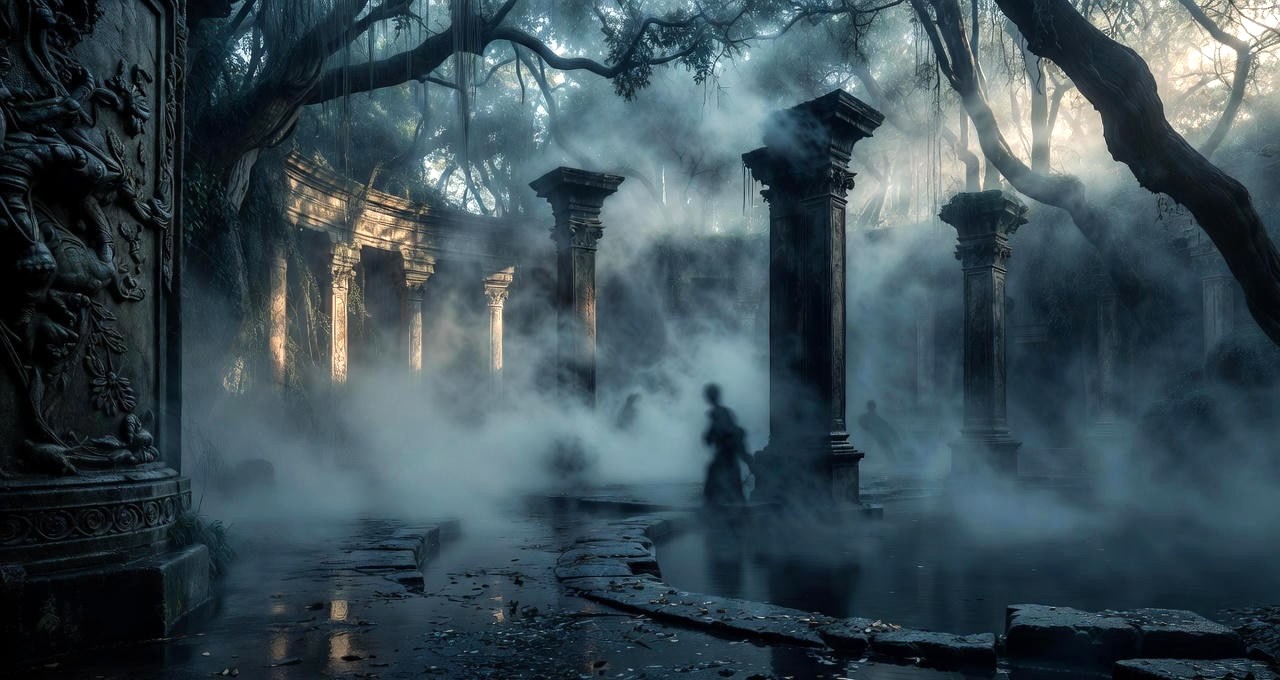 Dicen que sus ojos de piedra vieron desfilar a los enfermos, que los observaron beber de la piscina circular con la fe de quien bebe su último consuelo. Pero el agua, bajo la luna, no era clara: tenía el brillo del óxido, un color que recordaba la sangre vieja. En una de esas noches, cuando el jardín aún creía en su poder curativo, llegó un hombre llamado Don Ramiro de la Sombra.